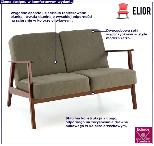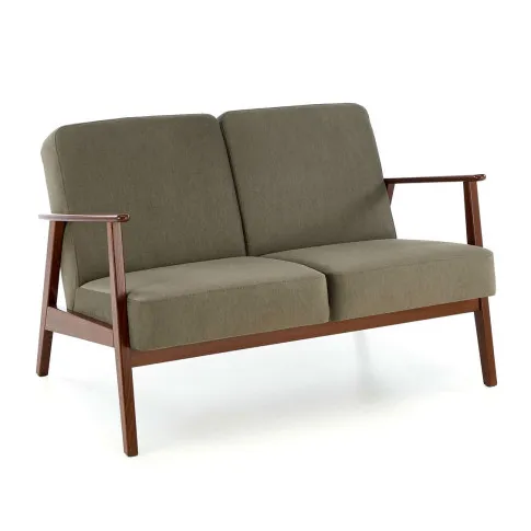 Dotyczy: Drewniana beżowa tapicerowana sofa retro - Alexander 4X