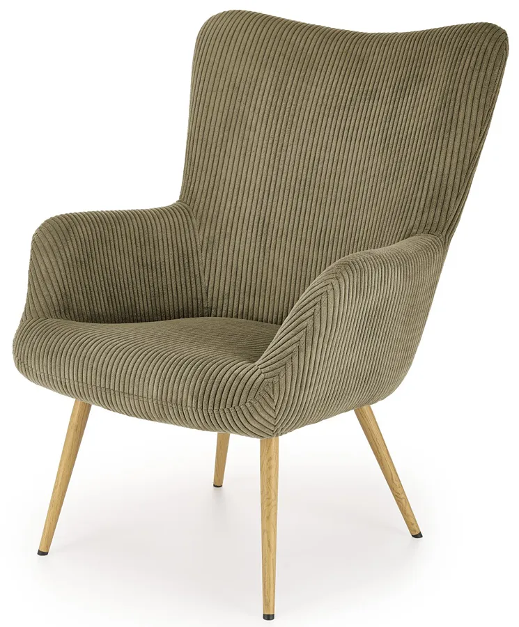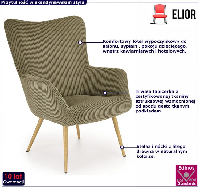 Oliwkowy fotel uszak w stylu skandi - Koneris