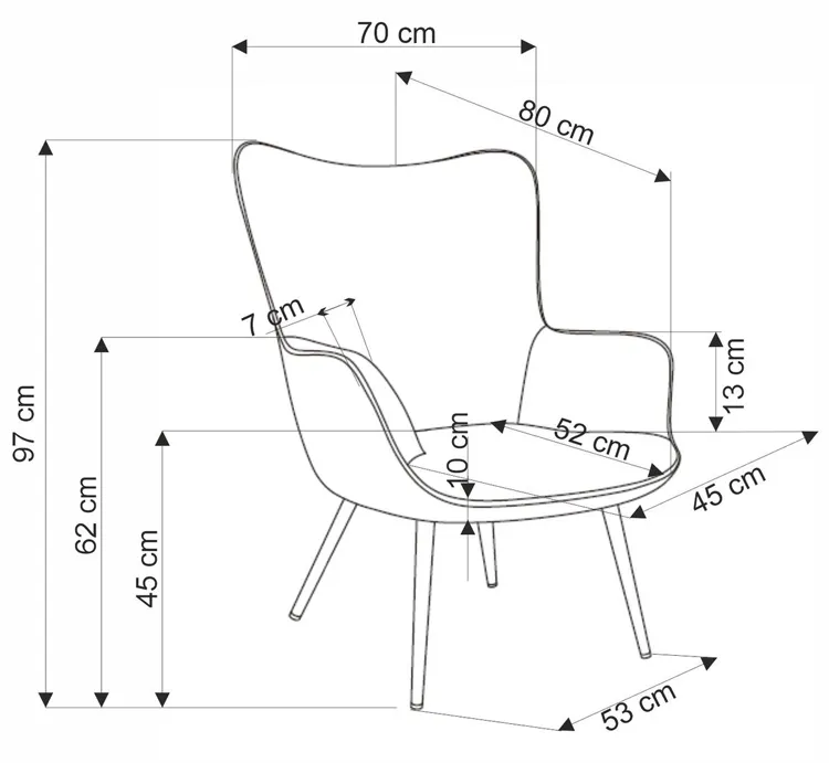 • Uniwersalność: Wygoda i ponadczasowe wzornictwo fotela sprawia, że mebel doskonale soprawdzi się w wielu wnętrzach i różnych aranżacjach, dodając im ciepła i charakteru.