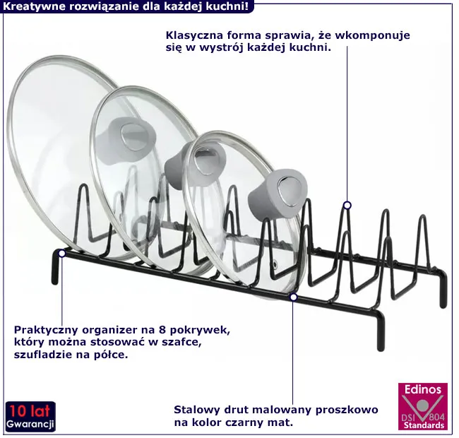 Dotyczy: Klasyczny metalowy stojak kuchenny na pokrywki - Shelly 6X