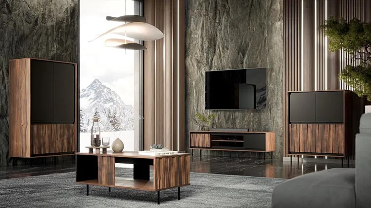 Kolekcja Montres od Edinos Premium to mariaż nowoczesności z klasyką, zaprojektowany z myślą o tych, którzy cenią sobie nie tylko funkcjonalność, ale i wyjątkowy design.  Minimalizm formy i znakomita jakość materiałów zestawiona z dekoracyjnymi orzechowymi frontami z efektem 3D, podkreślają unikalny charakter kolekcji, czyniąc ją duszą domowej przestrzeni. Składająca się z sześciu modeli przeznaczonych do aranżacji salonu, jadalni lub gabinetu, linia Montres wnosi do wnętrz aurę elegancji okraszonej nutą oryginalnościOto kolejny model tej zjawiskowej kolekcji  –  komoda Havier 7X!