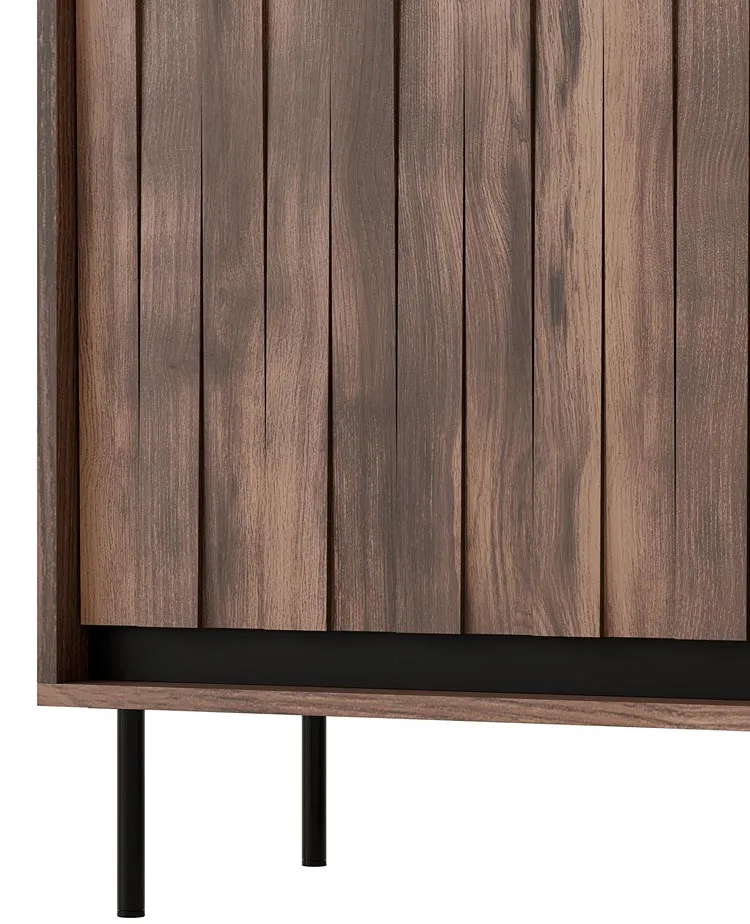 • Design z charakterem: Frezowane lamelowe fronty i smukłe metalowe nóżki nadają meblom wyrazistego charakteru.