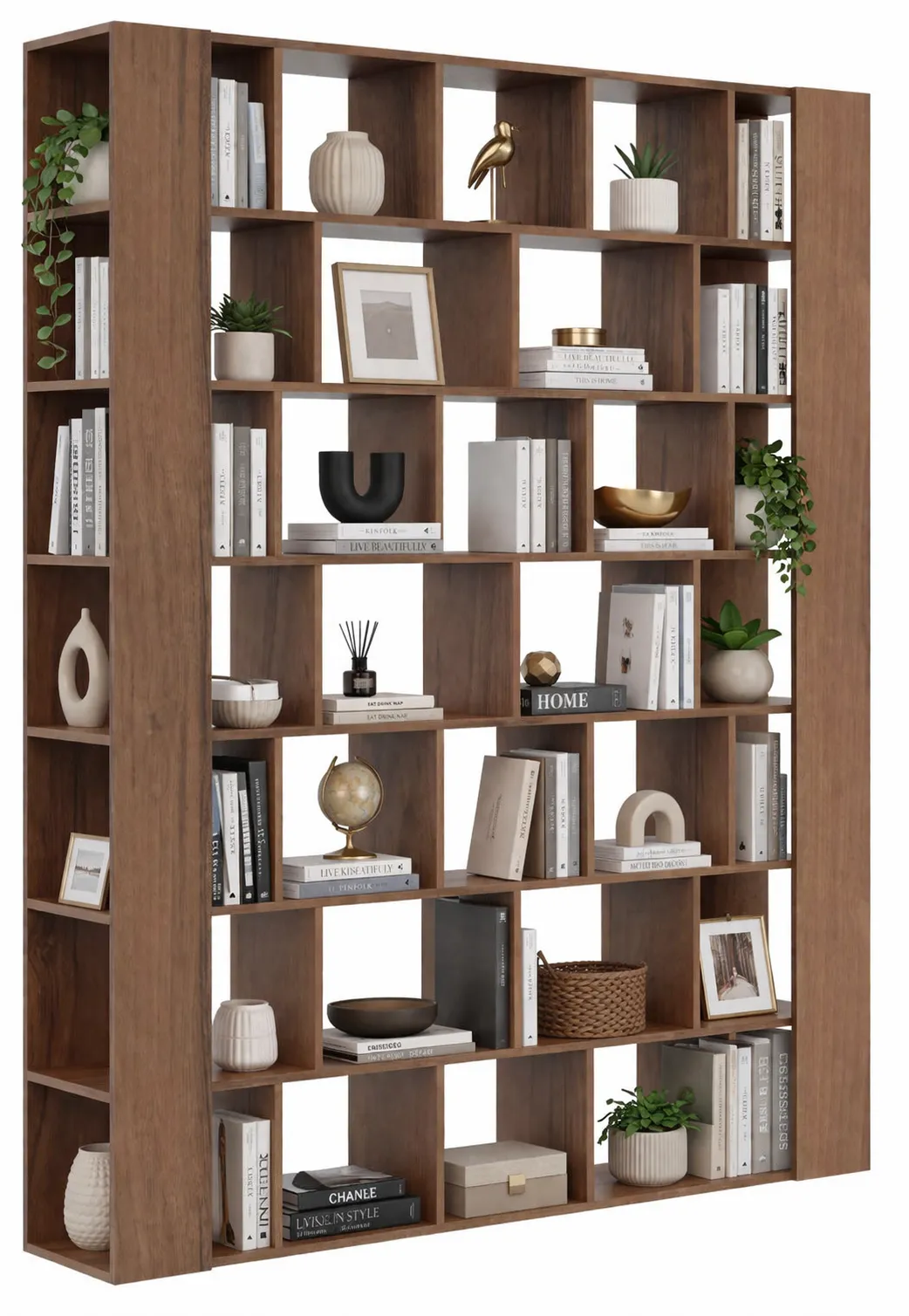 Wizualizacja orzechowego regału Naseri w nowoczesnym wnętrzu