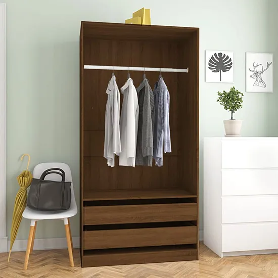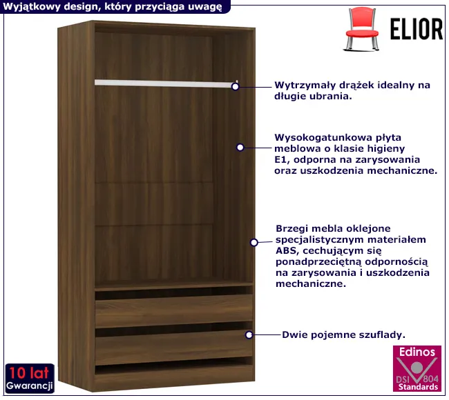 Dotyczy: Otwarta szafa z szufladami i drążkiem szary dąb - Uxaro 3X