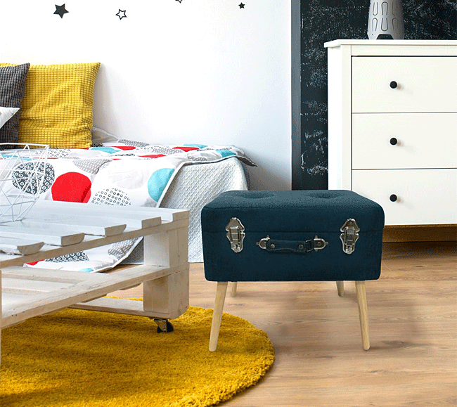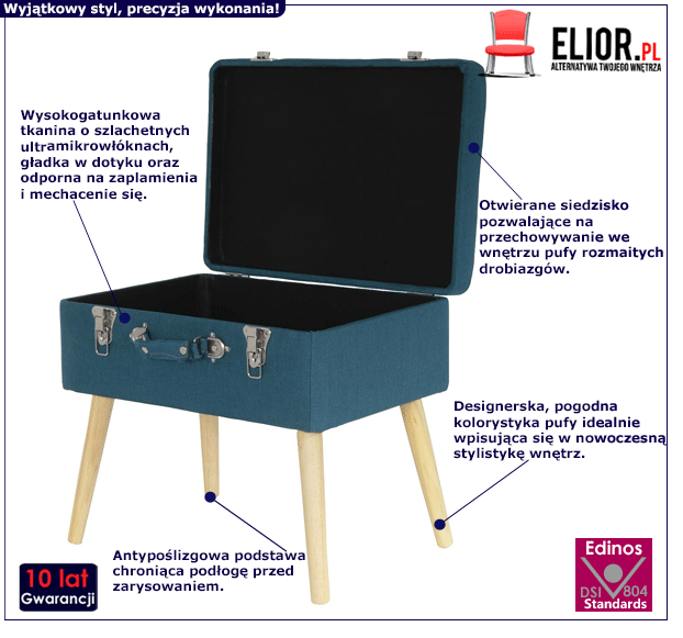 - Modny kolor: niebieski, drewno sosnowe. Kliknij w link i sprawdź także inne pufy z pojemnikiem w sklepie Edinos.pl. Stwórz swój praktyczny zestaw mebli.