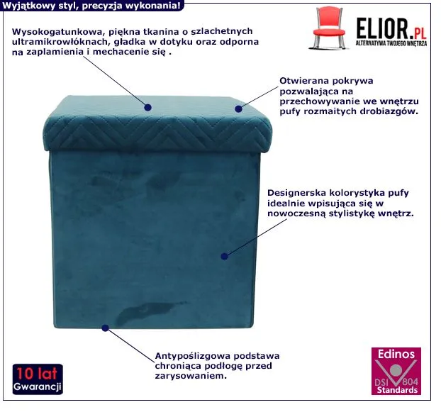 - Modny kolor: niebieski. Kliknij w link i sprawdź także inne pufy z pojemnikiem w sklepie Edinos.pl. Stwórz swój praktyczny zestaw mebli.