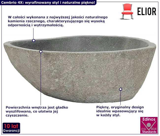 • Kamień rzeczny jest znany ze swojej trwałości, co gwarantuje, że umywalka będzie służyła przez wiele lat.