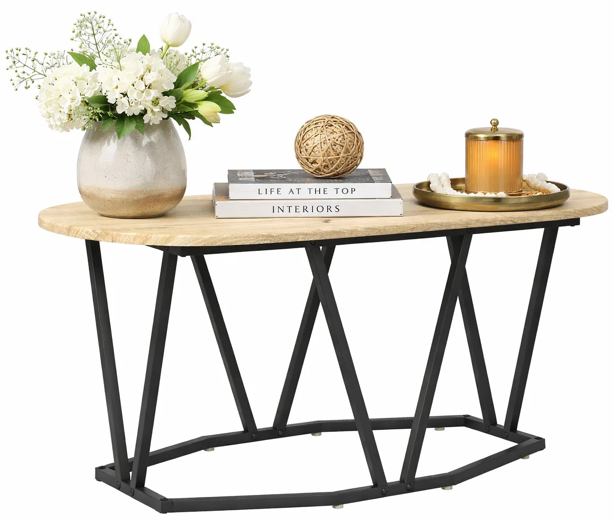Dotyczy: Nowoczesny stolik kawowy owalny metalowy dąb rzemieślniczy - Ebin