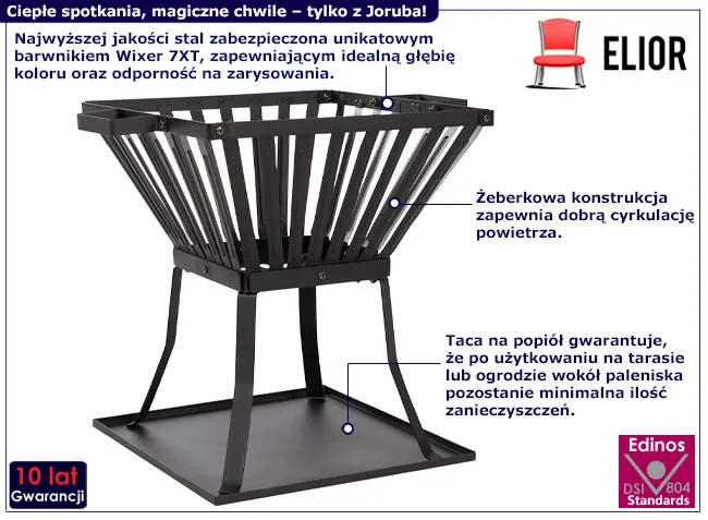 • kosz jest łatwy do przestawienia, co pozwala na łatwą zmianę lokalizacji paleniska w zależności od potrzeb użytkownika.
