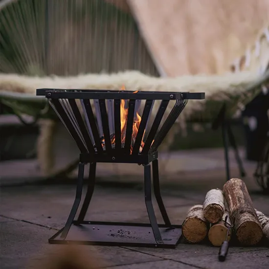 • klasyczny kosz paleniskowy z nowoczesnym, gładkim wykończeniem i elegancką, proszkowo malowaną stalą, która dodaje uroku każdemu otoczeniu.