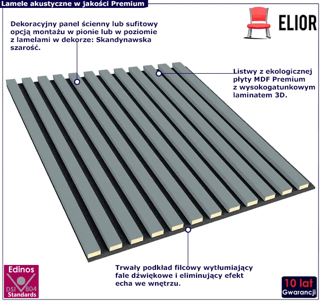 Szukasz pomysłów na niebanalne dekoracje ścienne? Nie możesz patrzeć na krzywe ściany w pokoju, ale nie chcesz przykrywać ich tapetą? A może urządzasz kino domowe lub studio nagrań w mieszkaniu i zastanawiasz się jak poprawić akustykę? Na wszystkie te pytania jest jedna odpowiedź – lamele akustyczne Giznia marki Edinos Premium! Teraz lamele Giznia oferujemy w wyjątkowo atrakcyjnej cenie tylko 788 zł, więc nie przegap okazji. Zamów panele Giznia i stwórz unikalne wnętrze już teraz!