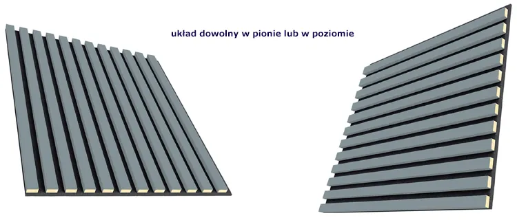 • 6 akustycznych paneli lamelowych na filcu do dekoracji ścian lub sufitu.