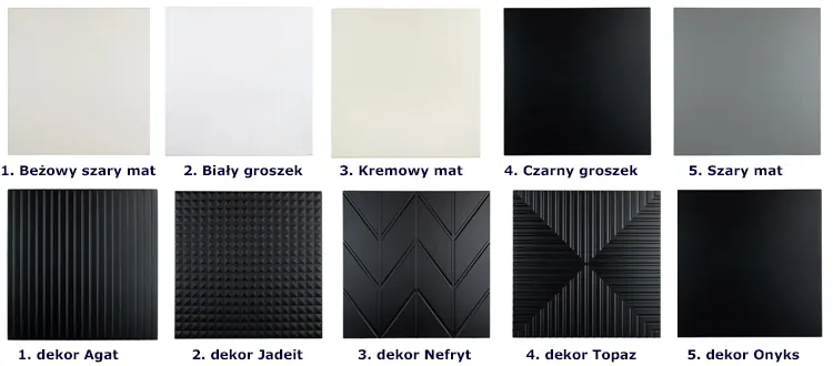 • Panele ścienne – panele ścienne w 5 wzorach i 5 kolorach, które możesz dowolnie miksować. Panele sprawdzą się jako wezgłowie łóżka w Twojej sypialni lub w pokoju nastolatka, ścianka telewizyjna czy efektowna dekoracja ściany w salonie.