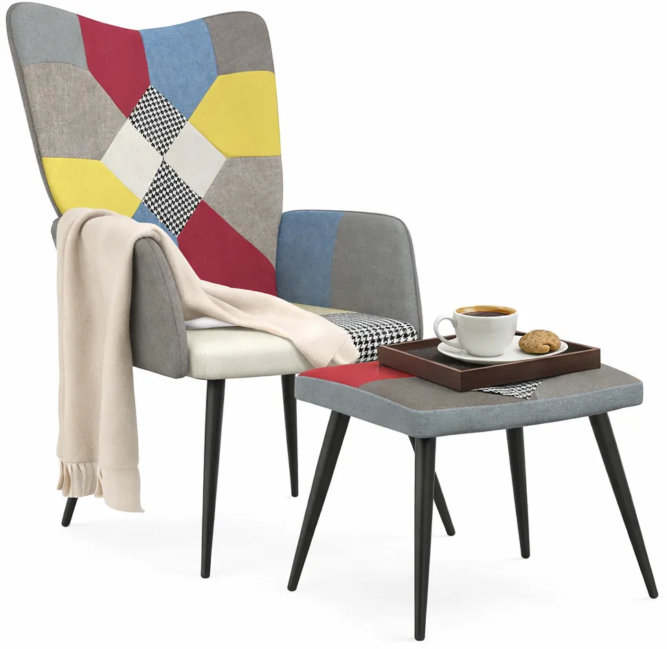 Patchworkowy nowoczesny fotel z podnóżkiem - Rippi 4X