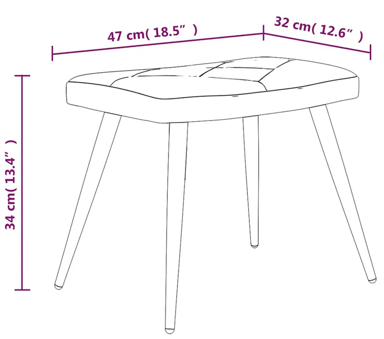Wymiary podnóżka: szerokość 47 cm, głębokość 32 cm, wysokość 34 cm