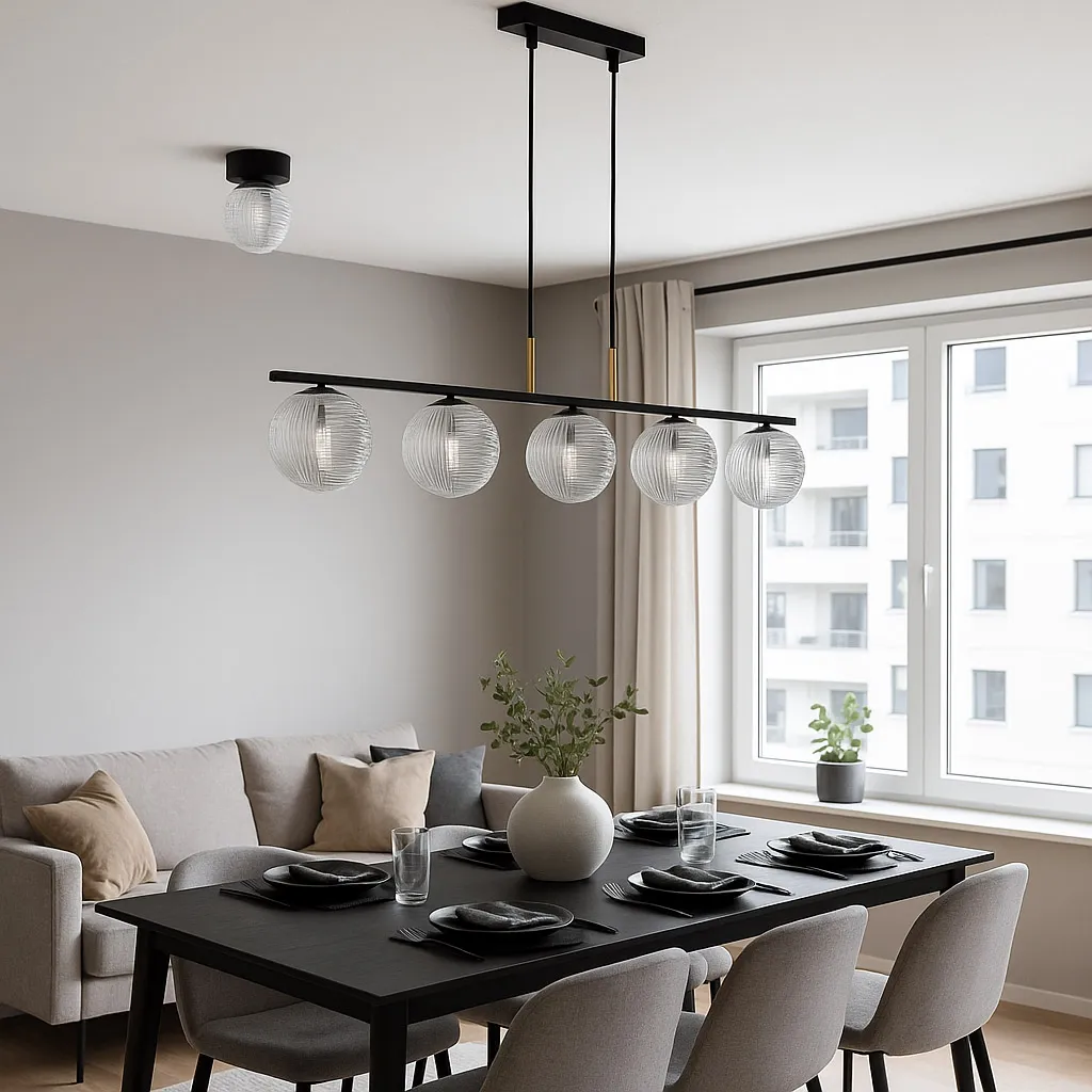 Pięcioramienny żyrandol Laxis M154 to kwintesencja klasy i wyrafinowanego designu. Doskonale prezentuje się w dużych wnętrzach – podkreśla ich charakter i nadaje im wyjątkowego blasku. To oświetlenie, które potrafi zbudować atmosferę luksusu bez przesady.