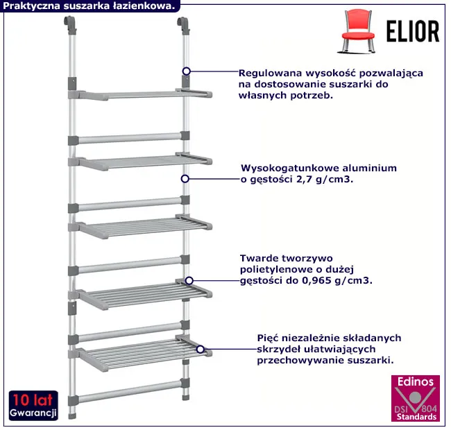 • regulowana wysokość, która pozwoli na dostosowanie suszarki do Twoich potrzeb