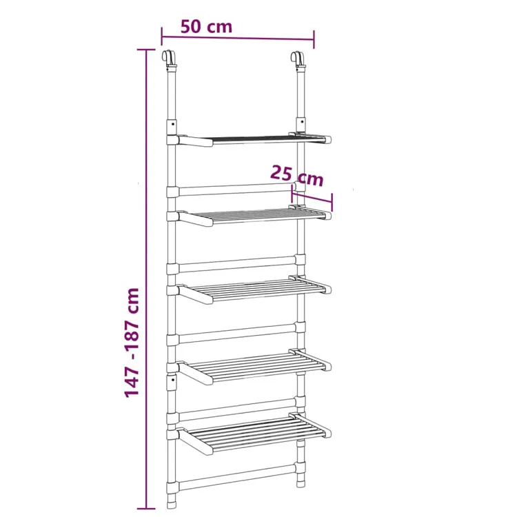 • Wymiary: szerokość: 50 cm, głębokość: 25 cm, wysokość: 147-187 cm.