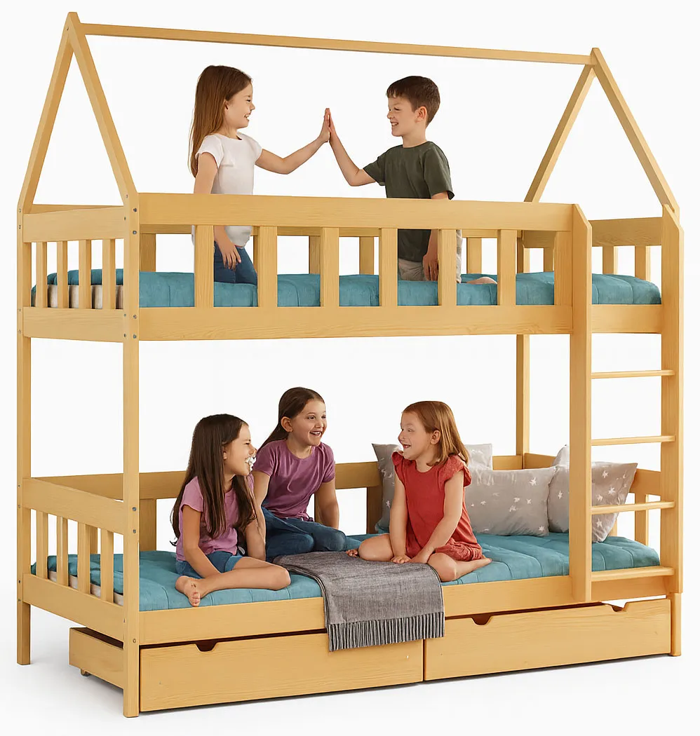 Dotyczy: Szare łóżko piętrowe domek dla dzieci w stylu skandynawskim - Varcon 4X 190x90 cm