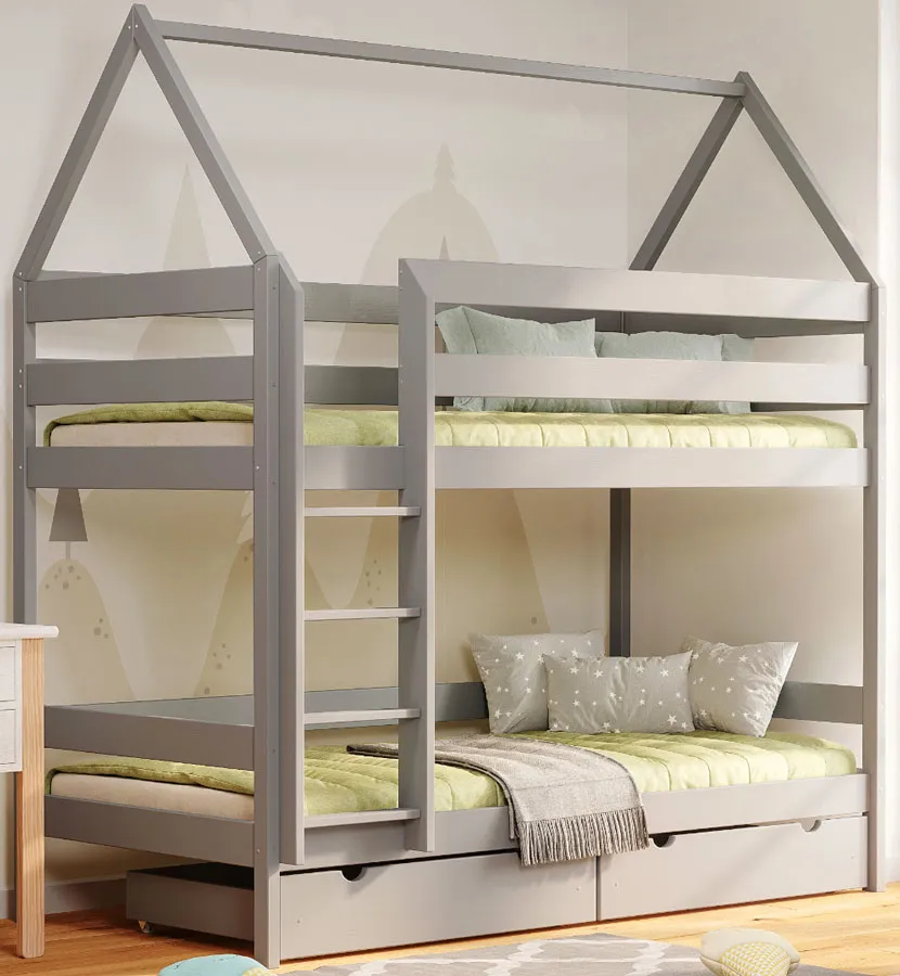 Dotyczy: Dziecięce łóżko piętrowe domek 2-osobowe z szufladami, sosna - Delisa 4X 180x80 cm
