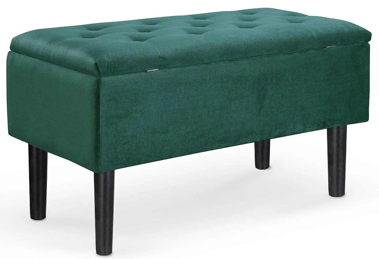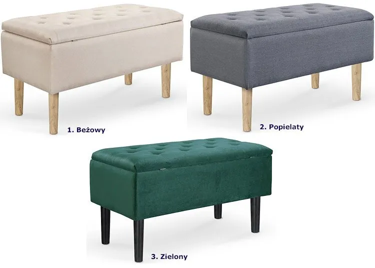 Pikowana ławka ze schowkiem Emir to najnowszy bestseller nagradzanych designerów marki Elior. Biorąc pod uwagę jej modny design i mnogość zastosowań - zupełnie nas to nie dziwi! Podczas tworzenia ławki, projektanci połączyli wyrafinowaną czerń ze szlachetnym odcieniem butelkowej zieleni uzyskując w ten sposób luksusowy, atrakcyjny wizualnie mebel, przyciągający uwagę wszystkich odwiedzających Cię gości. Dzięki zastosowaniu stonowanej kolorystyki i klasycznej formy Emir jest meblem uniwersalnym, wpasowującym się we wnętrza zaaranżowane w duchu minimalistycznym, skandynawskim, nowoczesnym, klasycznym, ale nie tylko. Niech Twoja wyobraźnia podpowie Ci gdzie jeszcze będziesz go używać. Być może wykorzystasz go w przestrzeniach komercyjnych? To świetny pomysł, bo ławka marki Elior nadaje ciepłego charakteru także wnętrzom użytkowym, takim jak kawiarnia, poczekalnia, gabinet czy biuro. Praktyczny rozmiar 80x40 cm pozwali Ci na korzystanie z mebla także w klimatycznych, przytulnych pomieszczeniach, nie przytłaczając ich. Zastosowanie ciepłych i jasnych barw dodatkowo rozjaśnia wnętrze i optycznie je powiększa.
