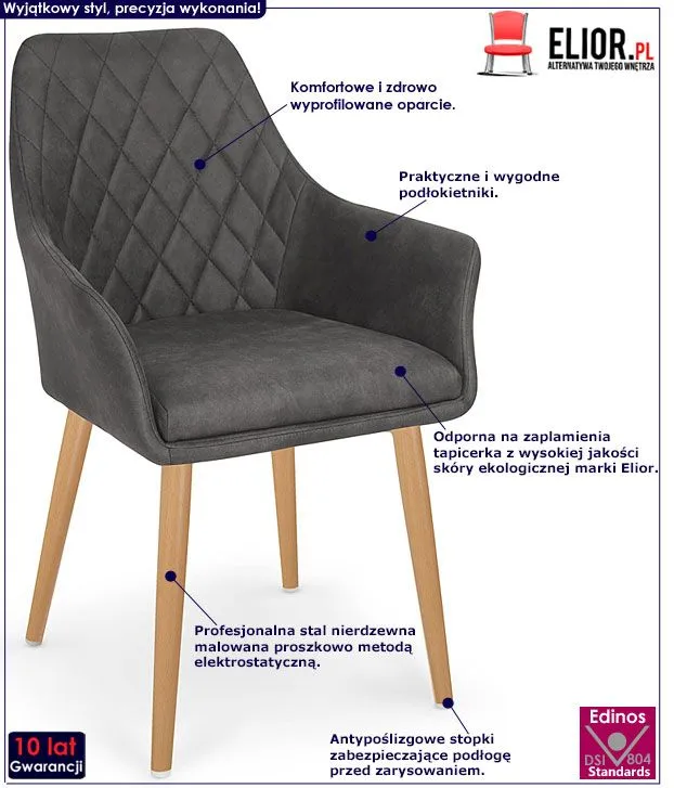 Dotyczy: Szare pikowane krzesło tapicerowane z podłokietnikami - Xurof