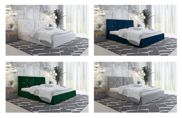 Tapicerowane łóżko Erdi 3X marki Elior zostało zaprojektowane specjalnie dla osób, które mają zdecydowany gust, cenią spersonalizowane projekty i meble o niesztampowym designie. Łóżko Erdi 3X z przepięknie pikowanym zagłówkiem zostało pokryte tapicerką z weluru z kolekcji francuskich tkanin marki Elior w 48 eleganckich kolorach do wyboru: