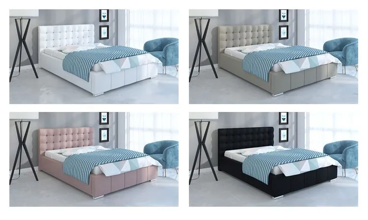 Łóżko Pastela 3X marki Edinos Premium wraz z ramą i zagłówkiem pokrywa designerska tapicerka z kolekcji francuskich welwetów marki Edinos Premium. Teraz możesz wybrać swój ulubiony kolor i fakturę tapicerki i spać na łóżku stworzonym specjalnie dla Ciebie! Do wyboru masz aż 36 kolorów, od pasteli po głębokie i nasycone kolory i 2 rodzaje tapicerek: