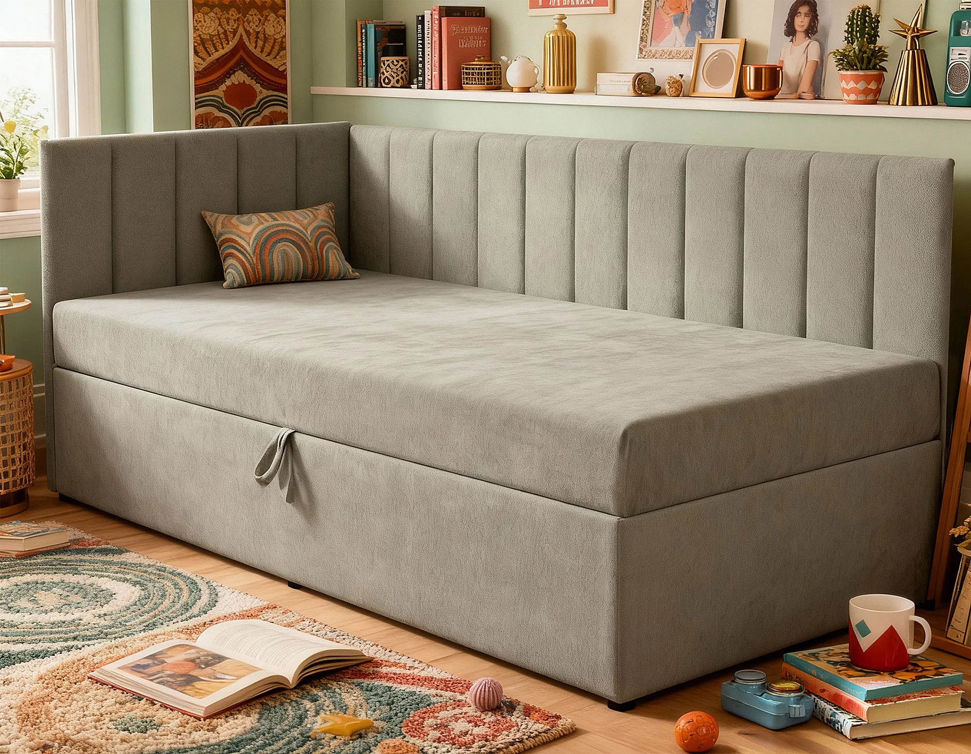 Dotyczy: Beżowy tapicerowany tapczan z pojemnikiem - Topeo