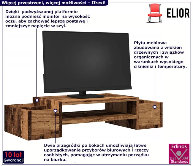• podwyższona platforma umożliwia ustawienie monitora na ergonomicznej wysokości