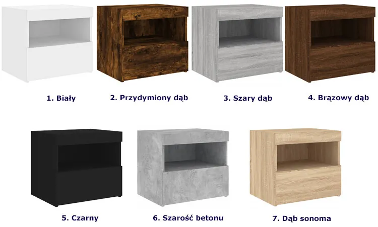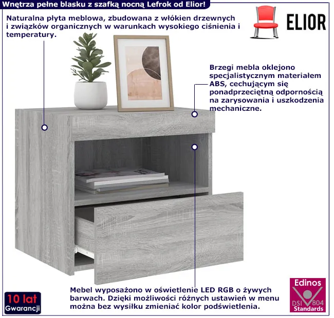 Dotyczy: Podświetlana szafka nocna z półką i szufladą przydymiony dąb - Ateno