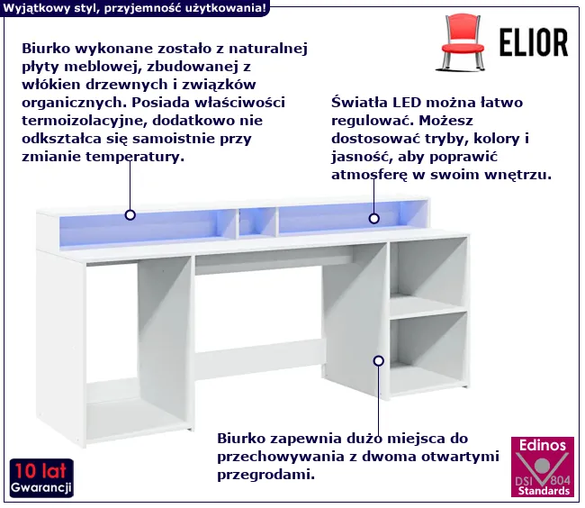 Dotyczy: Podświetlane biurko 200 cm betonowa szarość - Fixi