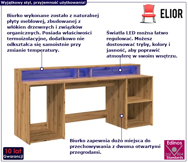 Dotyczy: Podświetlane biurko 200 cm betonowa szarość - Fixi