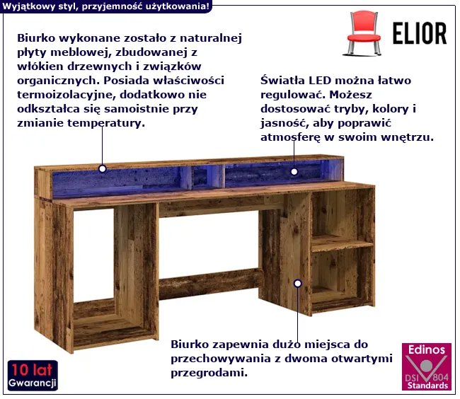 Dotyczy: Podświetlane biurko 200 cm betonowa szarość - Fixi