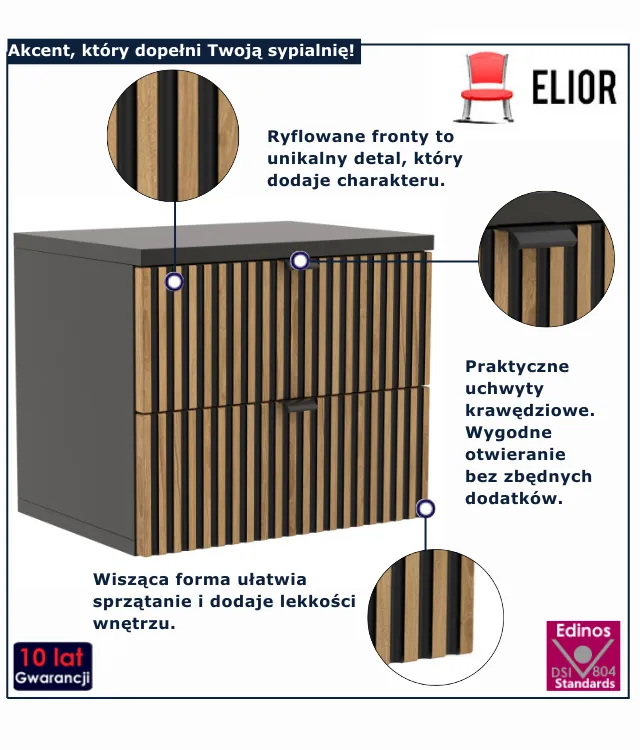 Dotyczy: Wisząca czarna szafka nocna ryflowana - Mafi 5X
