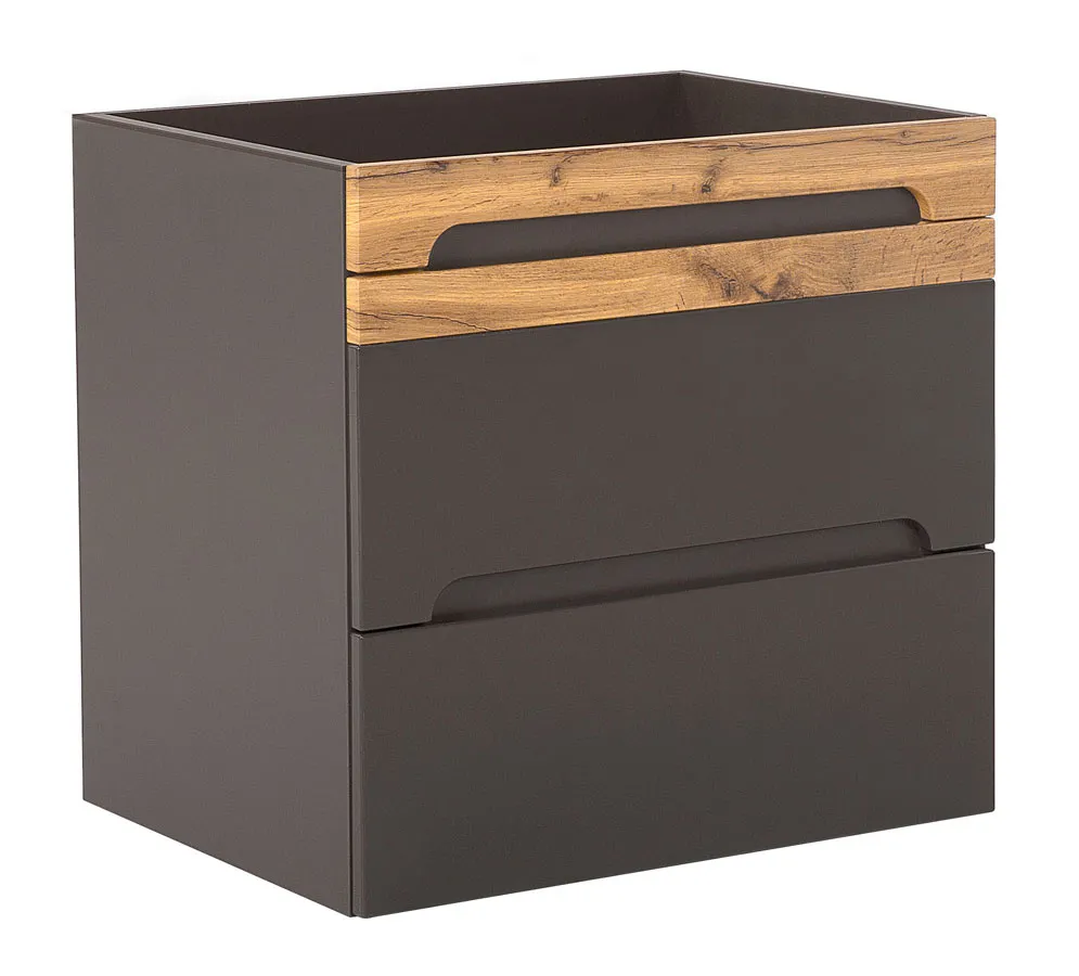 Lubisz praktycznie urządzone wnętrza? Takie w których wszystko ułożone jest w idealnym porządku? Szafka łazienkowa pod umywalkę Mea 4X Grafit 60 cm to mebel stworzony dla Ciebie! Posiada dwie głębokie szuflady - górną podzieloną na dwie części (z miejscem na konstrukcję hydrauliczną) oraz dolną standardową. Profesjonalny system cichego domykania znacznie podnosi komfort użytkowania mebla, a podwieszana forma ułatwia utrzymanie wnętrza w czystości. Lekki wizualnie design oraz subtelna kolorystyka mebla sprawia, że doskonale odnajdzie się on we wnętrzu w stylu klasycznym, nowoczesnym, loftowym czy też Eco. Drewniany dekor zastosowany na jednej z szuflad lekko przełamuje grafit idealnie ocieplając całość. Delikatnie wyfrezowane uchwyty niwelują wrażenie "płaskiej całości" sprawiając, że Mea 4X Grafit 60 cm wyróżnia się niezwykle designerskim charakterem. Podkreśl wnętrze doskonałą szafką pod umywalkę Mea 4X Grafit 60 cm i ciesz się idealnie zorganizowaną przestrzenią!