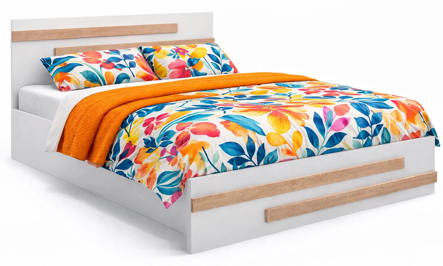 Poniżej prezentujemy wizualizację z wykorzystaniem łóżka Resso 5X w kolorze białym z wstawkami w kolorze dąb sonoma.