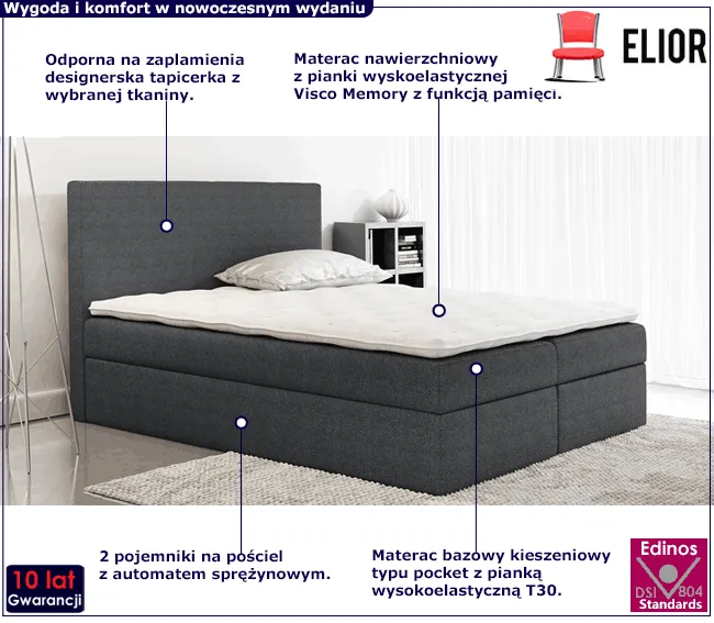 Dotyczy: Duże dwuosobowe łóżko kontynentalne Tafflo 200x200 - 36 kolorów