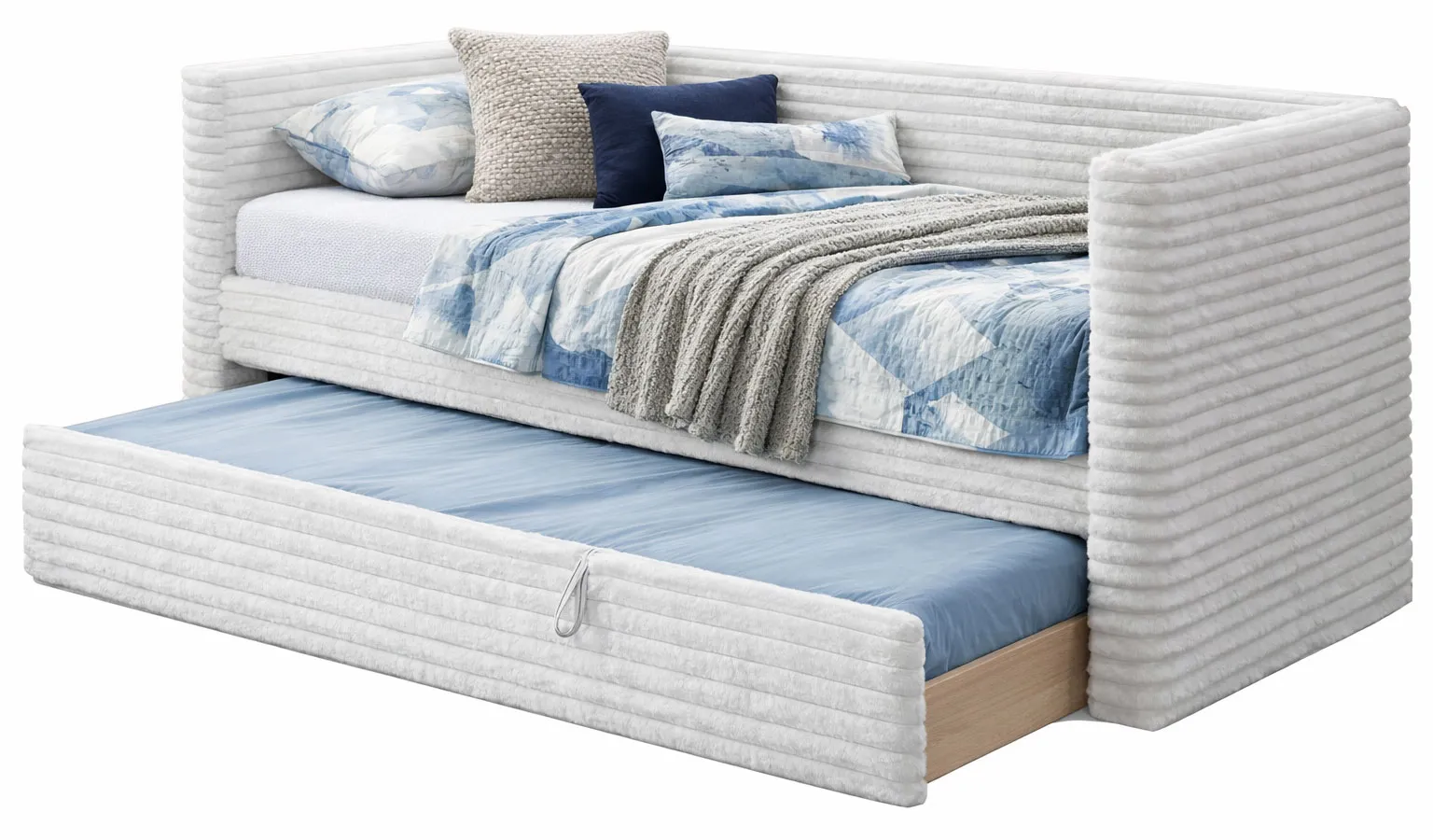 Podwójne łóżko kremowe z wysuwanym stelażem - Tafos