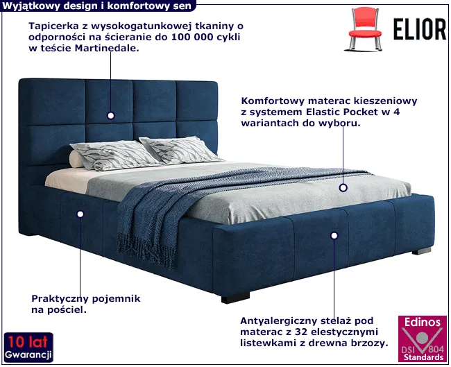 - Komfortowy zagłówek - stanowi komfortowe oparcie dla pleców, chroni ścianę przed zabrudzeniem i nadaje sypialni wyjątkowego charakteru.