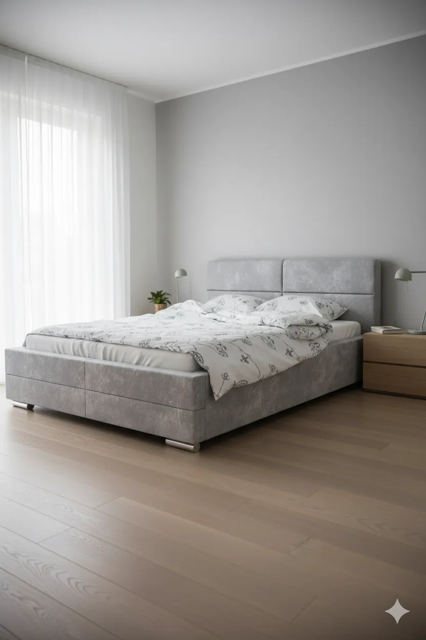 Łóżko Erli 2X marki Edinos Premium wraz z ramą i zagłówkiem pokrywa elegancka tapicerka z francuskich welwetów marki Edinos Premium. Teraz możesz wybrać swój ulubiony kolor i fakturę tapicerki i spać na łóżku skrojonym na Twoją miarę. Do wyboru masz aż 36 kolorów, od pasteli po głębokie i nasycone kolory i 2 rodzaje tapicerek: