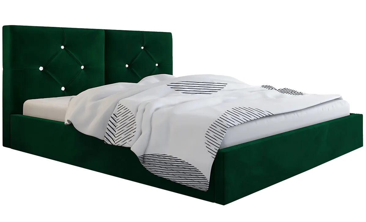 Podwójne tapicerowane łóżko Erdi 2X to unikatowy projekt młodych, zdolnych designerów marki Elior. Łóżko Erdi 2X zostało stworzone z potrzeby połączenia totalnej wygody i komfortu z niebanalnym wzornictwem spod znaku glamour. Podstawę łóżka Erdi 2X stanowi mocna skrzynia o grubości 1,6 mm, wykonana z drewna naturalnego i płyty meblowej zbudowanej z włókien drzewnych i związków organicznych. Dodatkowo, płyta została uszlachetniona cienkimi filmami melaminowymi w celu zwiększenia jej trwałości. Na skrzyni obłożonej profesjonalną pianką o grubości T25 i tapicerowanej szlachetną tkaniną welwetową lub ekoskórą opiera się doskonały jakościowo drewniany stelaż o maksymalnym obciążeniu aż do 200 kg, otwierany za pomocą nowoczesnych podnośników sprężynowych. Stelaż wykonany z 32 sprężynujących listewek z naturalnego drewna brzozowego ułatwia cyrkulację powietrza pod materacem, co pozytywnie wpływa na jakość snu oraz wydłuża żywotność materaca. W ramie łóżka mieści się pojemnik na pościel, wykonany z mocnej tkaniny technicznej, mocowany za pomocą rzepów. To praktyczne rozwiązanie doskonale uzupełnia walory użytkowe stanowiąc rewelacyjny sposób na zachowanie porządku w sypialni. Tak zaprojektowane łóżko Erdi 2X marki Elior to synonim najwyższej jakości, wyrafinowanego stylu i komfortowego snu w odsłonie glamour.