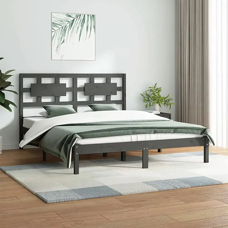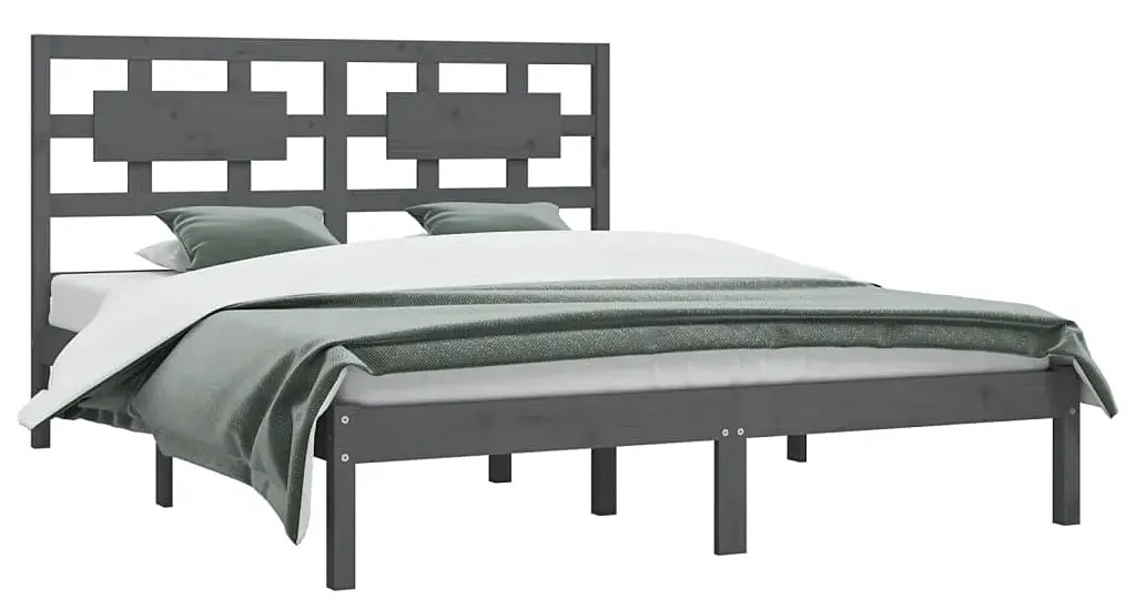 Podwójne szare łóżko sosnowe 140x200 - Wexa 5X