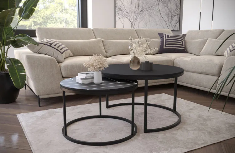 Dotyczy: Zestaw 2 okrągłych stolików do salonu jodełka - Azer 4X
