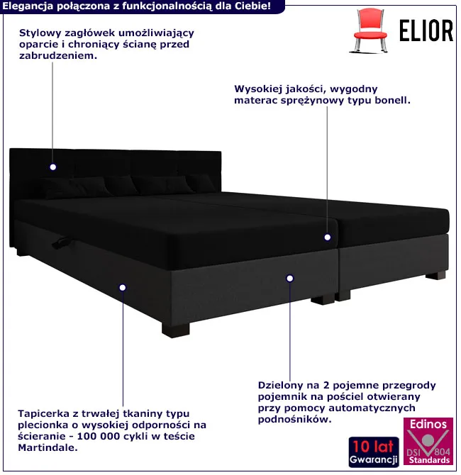 Dotyczy: Niebieski tapczan dwuosobowy z zagłówkiem Diksi 3X - 3 rozmiary