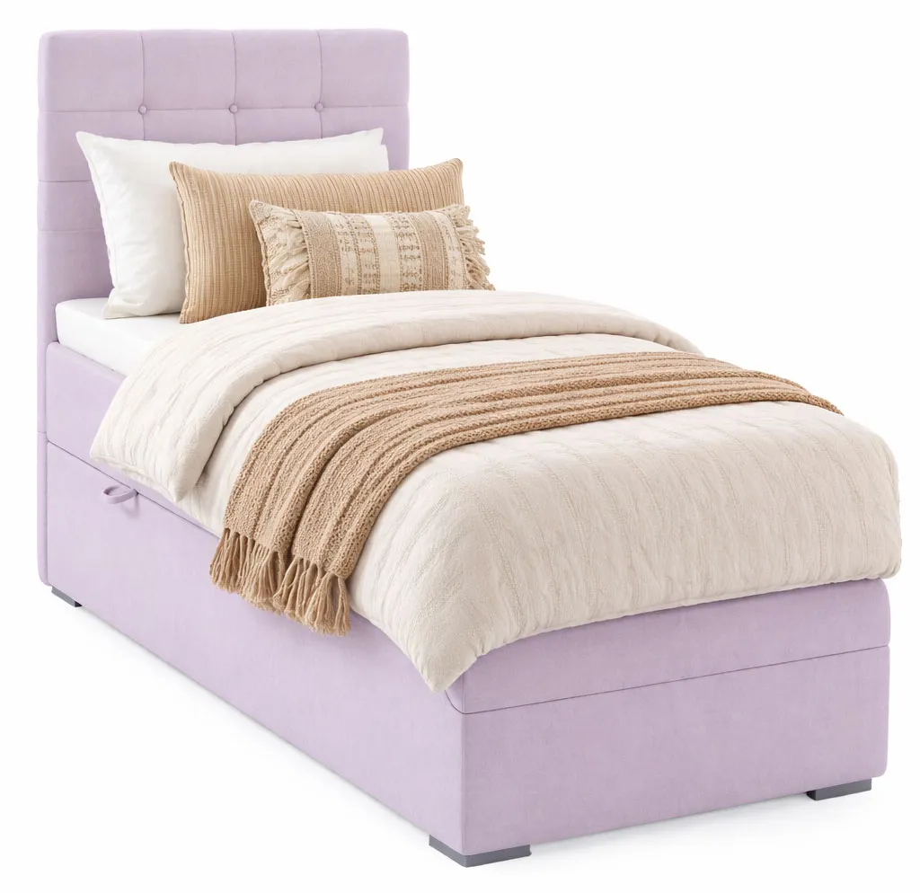 - Łóżko wyposażone jest w pojemnik na pościel, wysokiej jakości materac bazowy typu bonell z pianką T 25 o grubości 20 cm i Topper z pianki Visco Memory o grubości 5 cm.