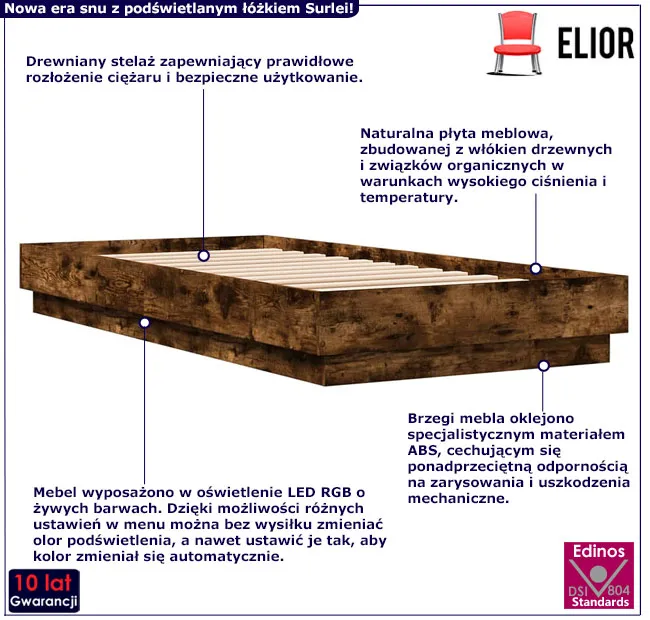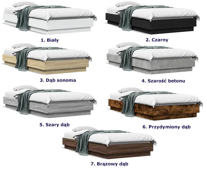 Dotyczy: Nowoczesne łóżko z oświetleniem LED brązowy dąb 90x200 - Irjas