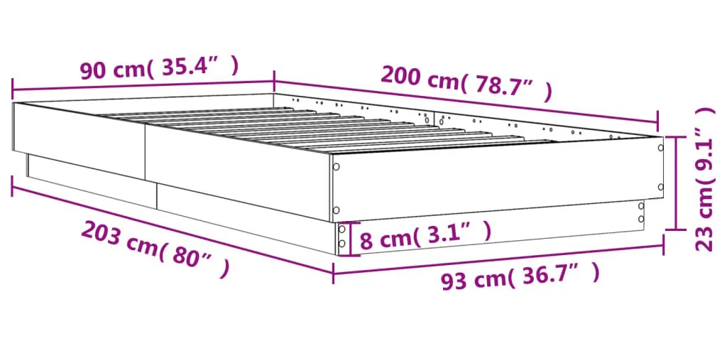 Dotyczy: Pojedyncze łóżko z podświetleniem dąb sonoma 90x200 - Irjas