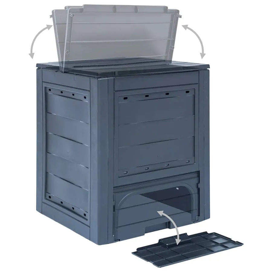 • Dzielona pokrywa pojemnika ułatwia nawadnianie i wentylację odpadów organicznych, zapewniając optymalne warunki do kompostowania.