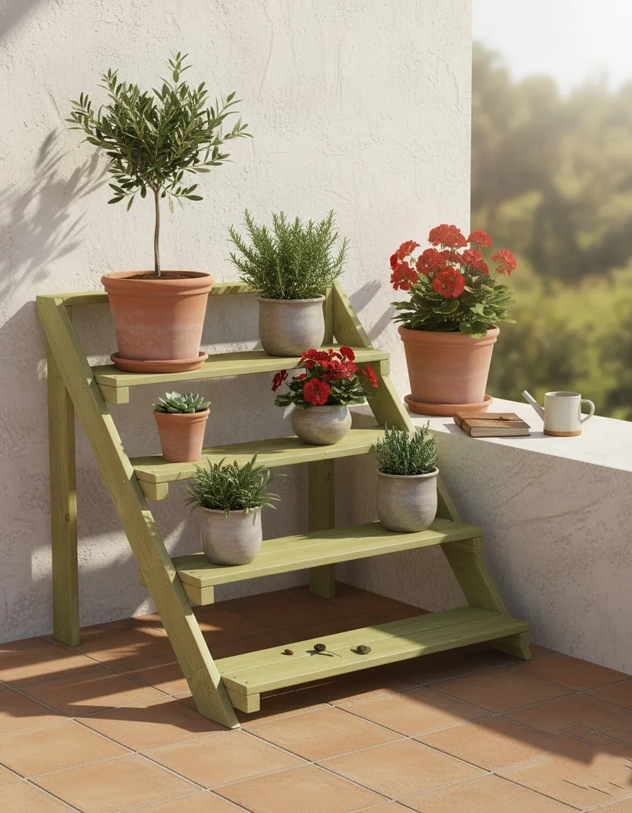- Stabilna konstrukcja o schodkowej konstrukcji z 5 półkami na doniczki.